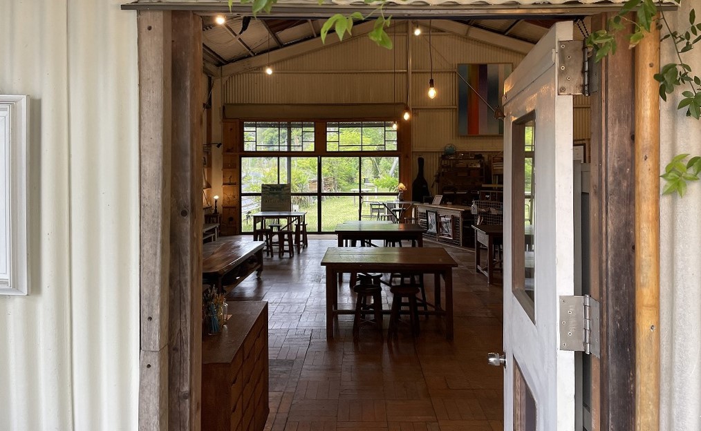 突然電車の音がふと異空間へ。 カフェしながらワークショップも出来ます。 |